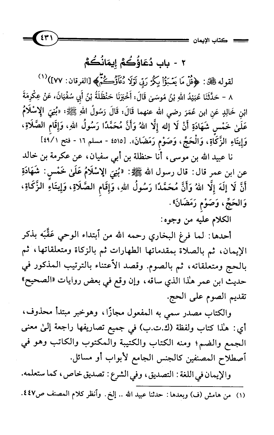 2 - باب دُعَاؤُكُمْ إِيمَانُكُمْ
