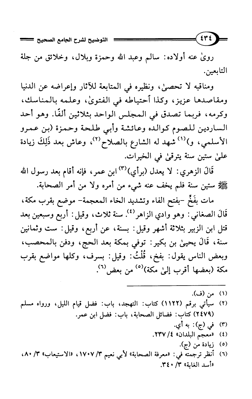 (¬2) سيأتي برقم (1122) كتاب: التهجد، باب: فضل قيام الليل، ورواه مسلم (2479) كتاب: فضائل الصحابة، باب: فضل ابن عمر.
