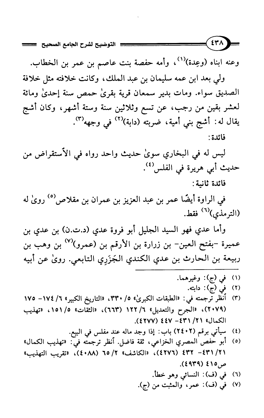 في الراوة أيضًا عمر بن عبد العزيز بن عمران بن مقلاص (¬5) روى له (الترمذي) (¬6) فقط.