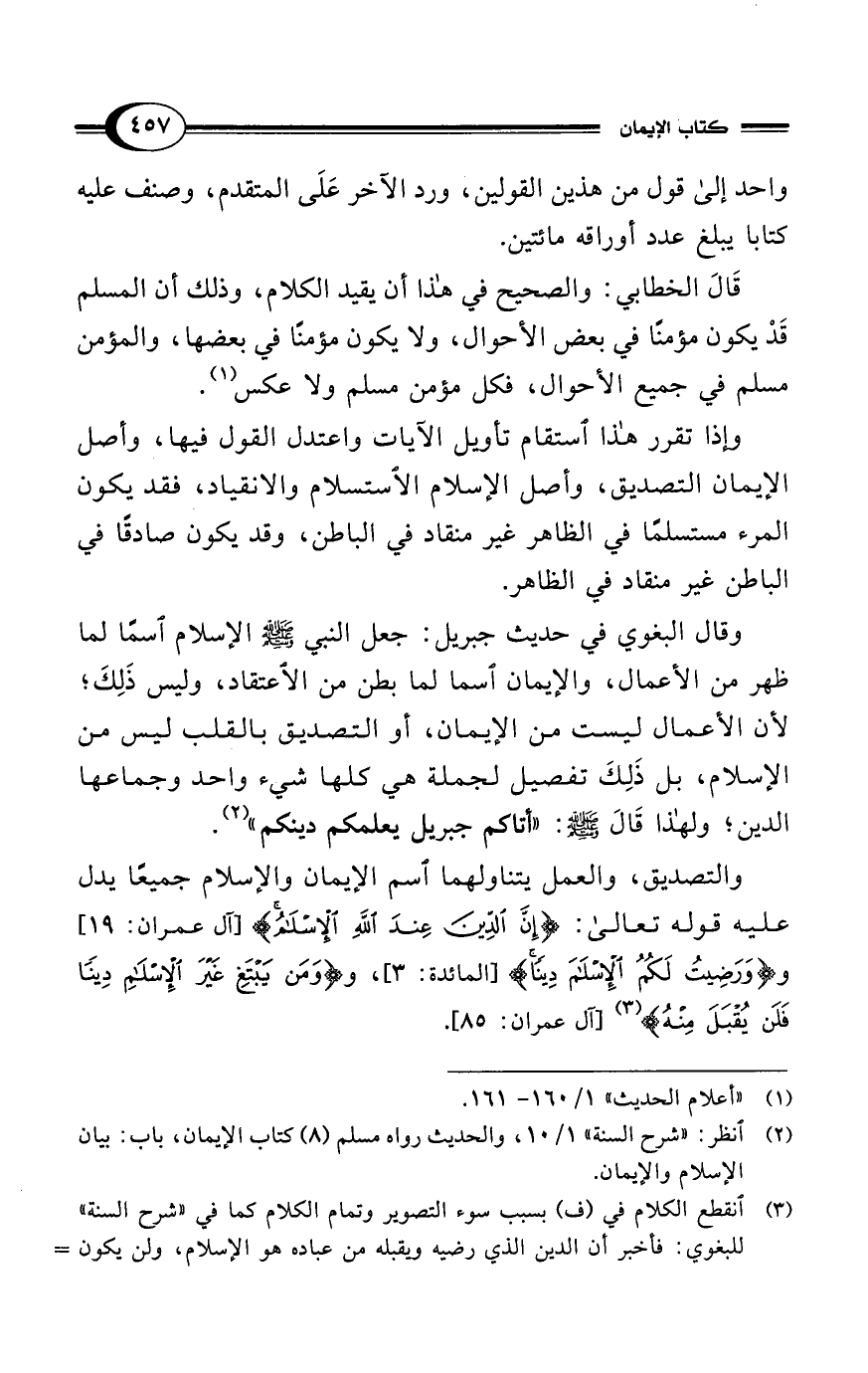 (¬2) انظر: "شرح السنة" 1/ 10، والحديث رواه مسلم (8) كتاب الإيمان، باب: بيان الإسلام والإيمان.