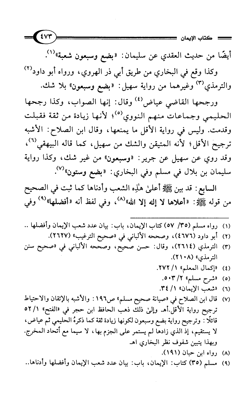 (¬9) مسلم (35) كتاب: الإيمان، باب: بيان عدد شعب الإيمان وأفضلها وأدناها ..