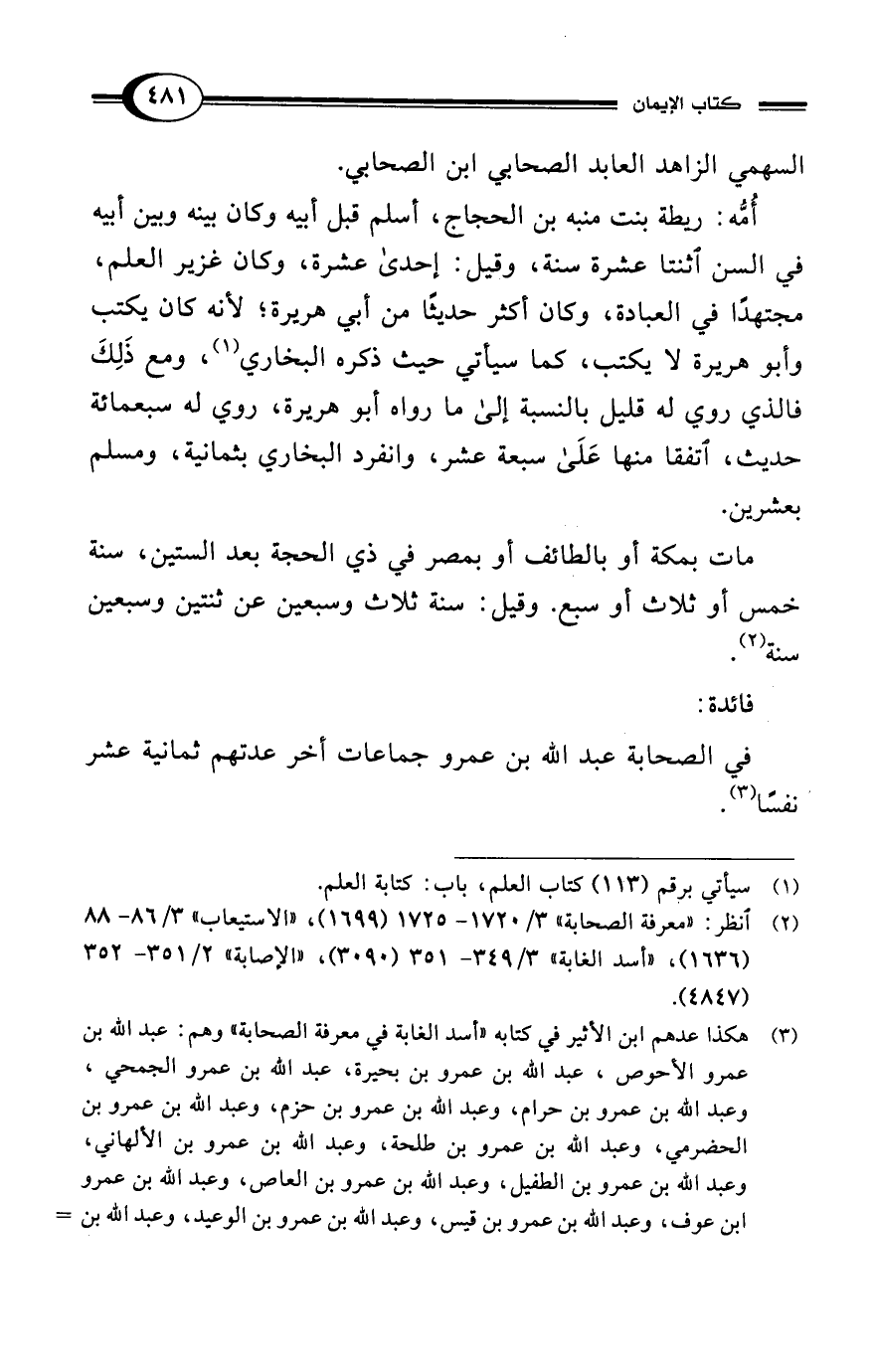 السهمي الزاهد العابد الصحابي ابن الصحابي.