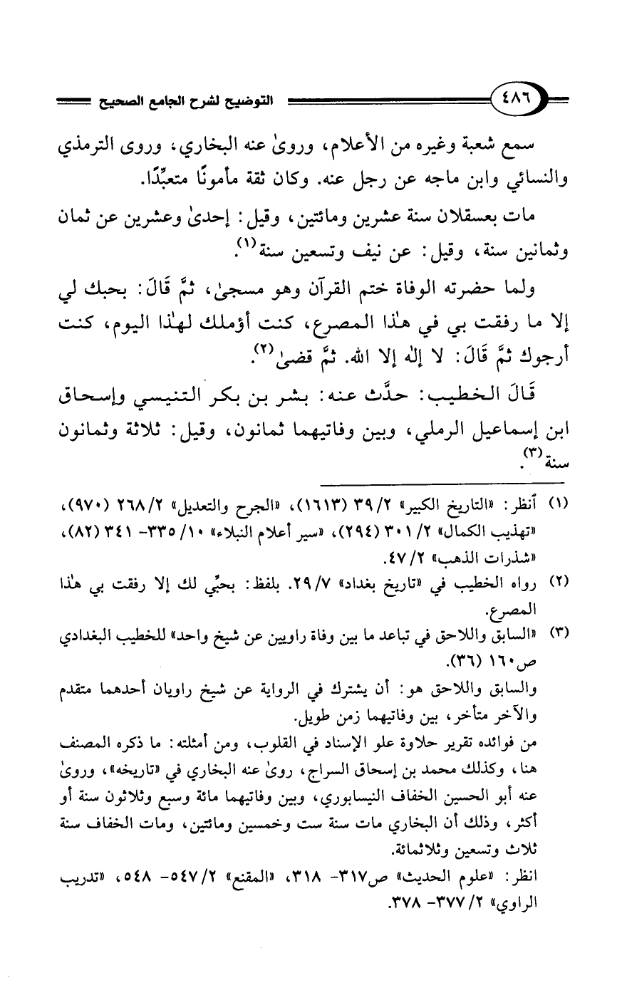 (¬3) "السابق واللاحق في تباعد ما بين وفاة راويين عن شيخ واحد" للخطيب البغدادي ص 160 (36).