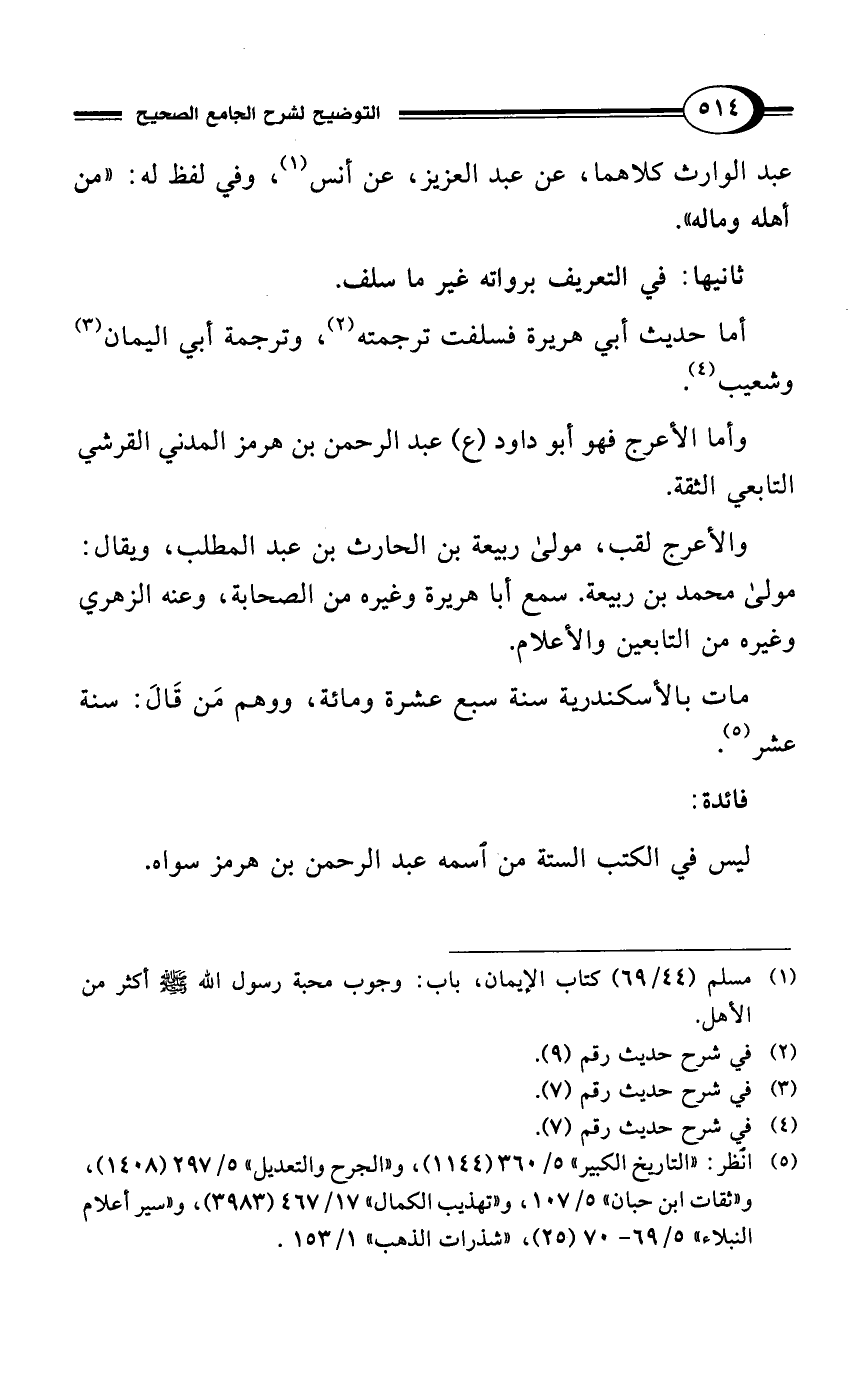 والأعرج لقب، مولى ربيعة بن الحارث بن عبد المطلب، ويقال: مولى محمد بن ربيعة. سمع أبا هريرة وغيره من الصحابة، وعنه الزهري وغيره من التابعين والأعلام.