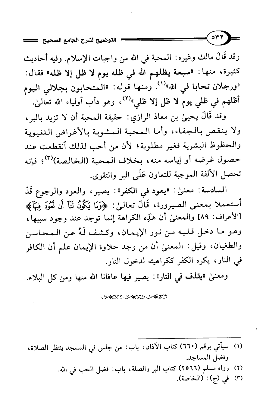 (¬2) رواه مسلم (2566) كتاب البر والصلة، باب: فضل الحب في الله.