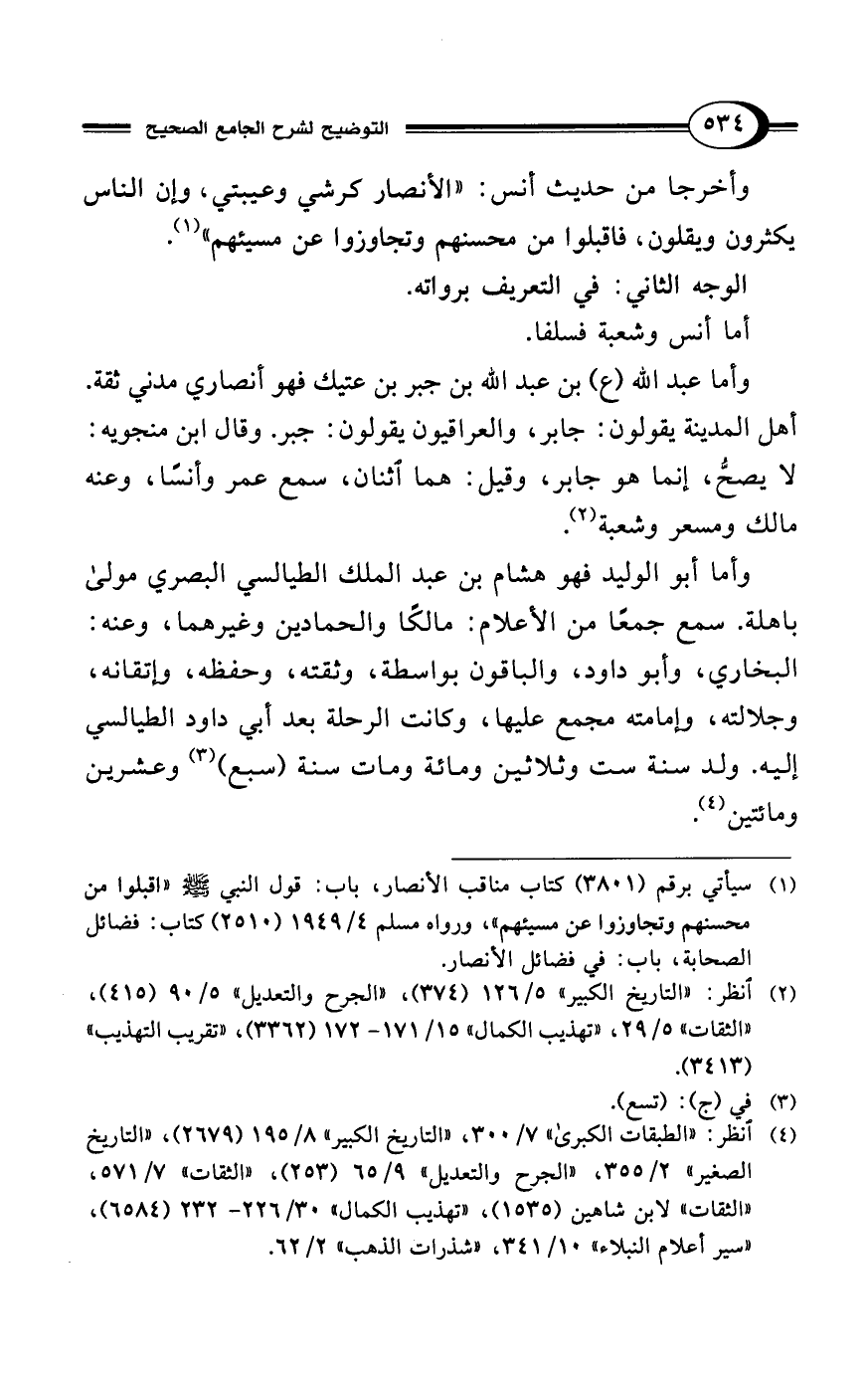 وأما أبو الوليد فهو هشام بن عبد الملك الطيالسي البصري مولى باهلة. سمع جمعًا من الأعلام: مالكًا والحمادين وغيرهما، وعنه: البخاري، وأبو داود، والباقون بواسطة، وثقته، وحفظه، وإتقانه، وجلالته، وإمامته مجمع عليها، وكانت الرحلة بعد أبي داود الطيالسي إليه. ولد سنة ست وثلاثين ومائة ومات سنة (سبع) (¬3) وعشرين ومائتين (¬4).