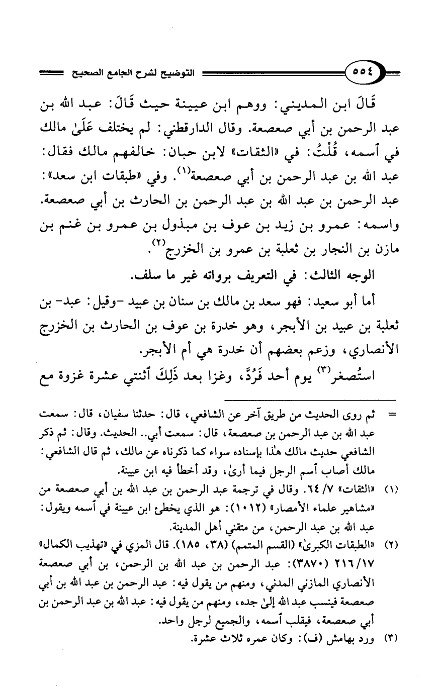 (¬2) "الطبقات الكبرى" (القسم المتمم) (38، 185). قال المزي في "تهذيب الكمال" 17/ 216 (3870): عبد الرحمن بن عبد الله بن الرحمن، بن أبي صعصعة الأنصاري المازني المدني، ومنهم من يقول فيه: عبد الرحمن بن عبد الله بن أبي صعصعة فينسب عبد الله إلى جده، ومنهم من يقول فيه: عبد الله بن عبد الرحمن بن أبي صعصعة، فيقلب اسمه، والجميع لرجل واحد.