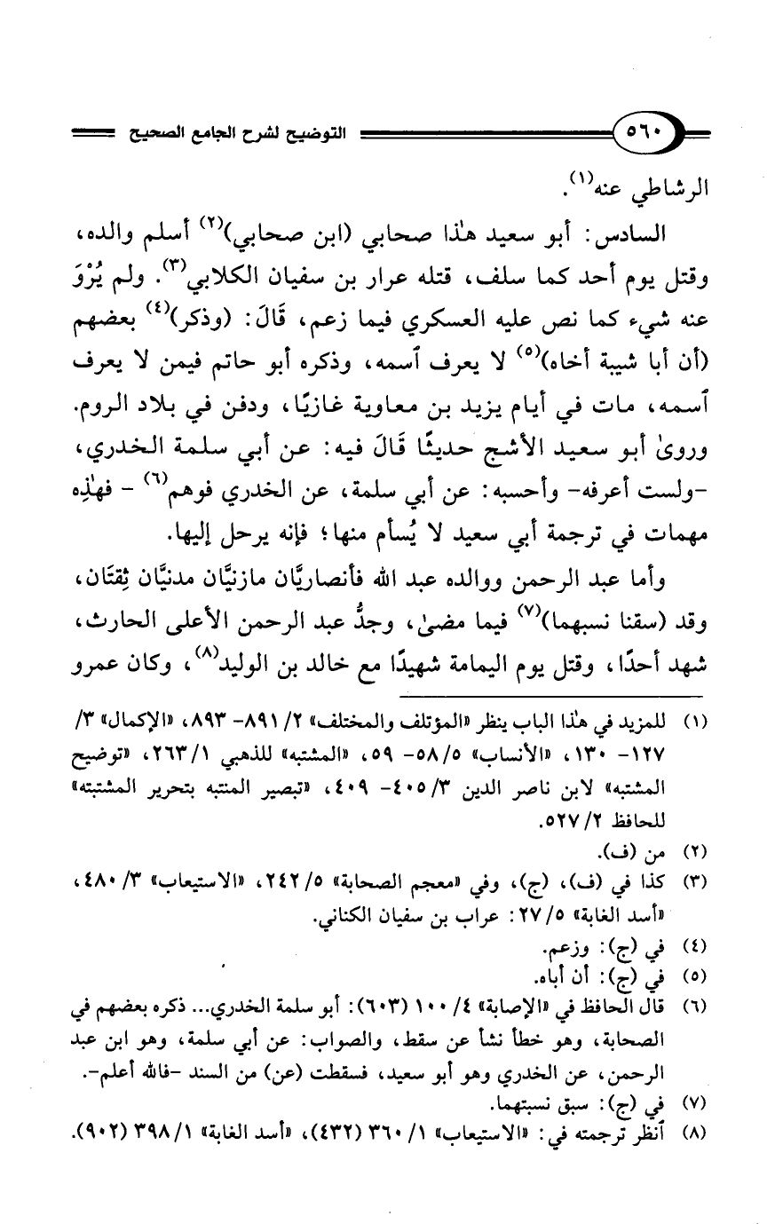 (¬6) قال الحافظ في "الإصابة" 4/ 100 (603): أبو سلمة الخدري ... ذكره بعضهم في الصحابة، وهو خطأ نشأ عن سقط، والصواب: عن أبي سلمة، وهو ابن عبد الرحمن، عن الخدري وهو أبو سعيد، فسقطت (عن) من السند -فالله أعلم-.