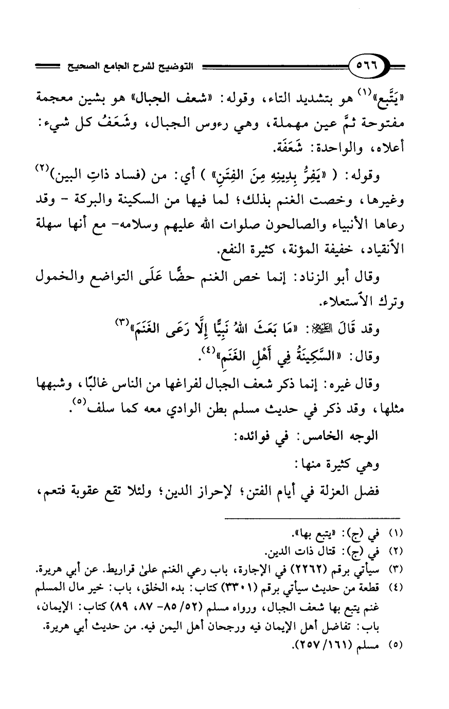 وقوله: ("يَفِرُّ بِدِينِهِ مِنَ الفِتَنِ") أي: من (فساد ذاتِ البين) (¬2) وغيرها، وخصت الغنم بذلك؛ لما فيها من السكينة والبركة -وقد رعاها الأنبياء والصالحون صلوات الله عليهم وسلامه- مع أنها سهلة الانقياد، خفيفة المؤنة، كثيرة النفع.