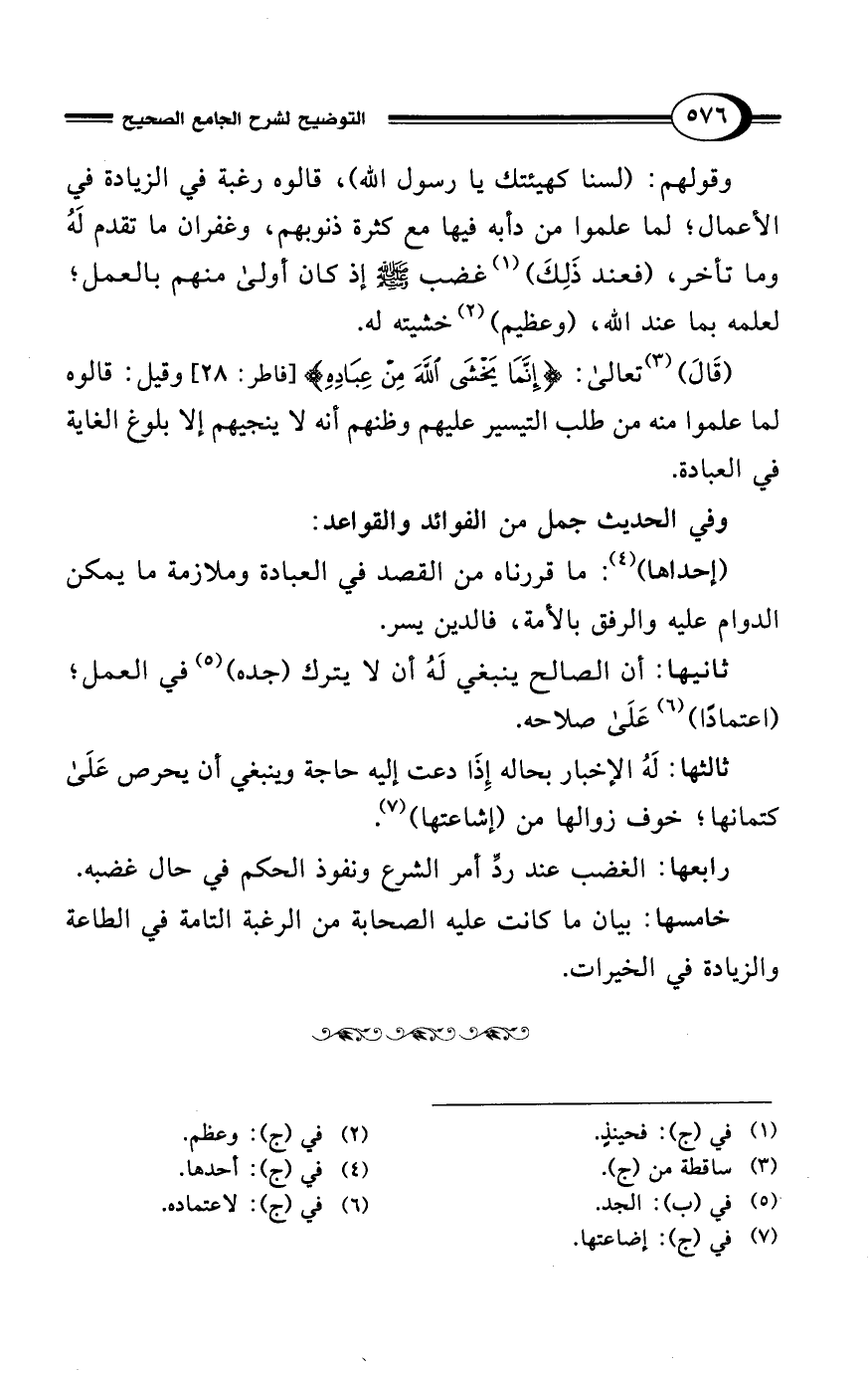 (قَالَ) (¬3) تعالى: {إِنَّمَا يَخْشَى اللَّهَ مِنْ عِبَادِهِ} [فاطر: 28] وقيل: قالوه لما علموا منه من طلب التيسير عليهم وظنهم أنه لا ينجيهم إلا بلوغ الغاية في العبادة.