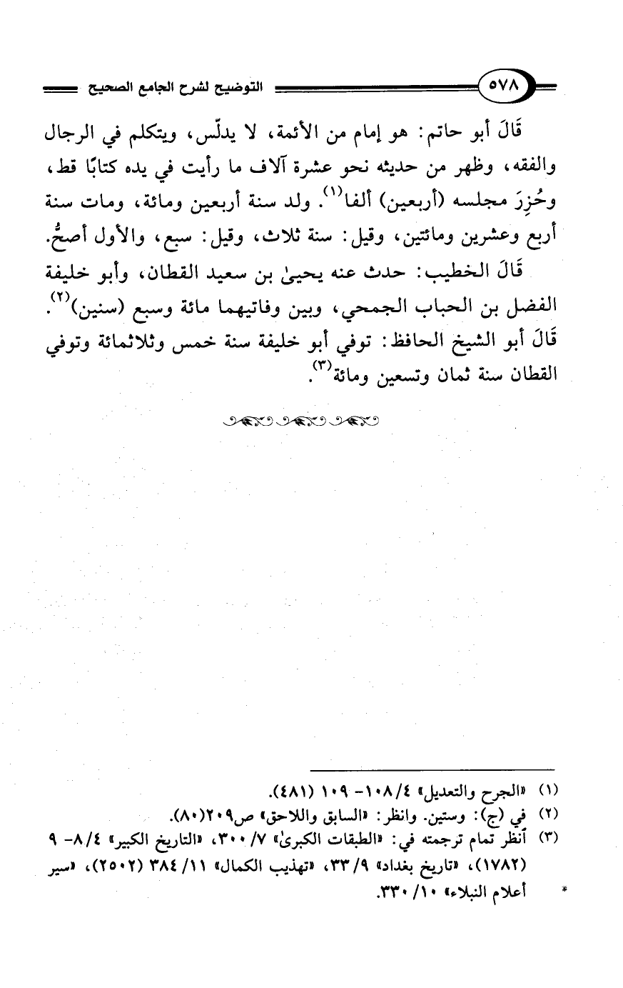 (¬3) انظر تمام ترجمته في: "الطبقات الكبرى" 7/ 300، "التاريخ الكبير" 4/ 8 - 9 (1782)، "تاريخ بغداد" 9/ 33، "تهذيب الكمال" 11/ 384 (2502)، "سير أعلام النبلاء" 10/ 330.