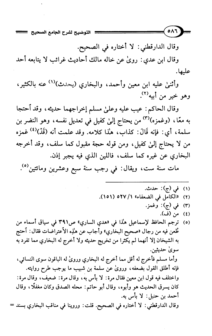 (¬5) ترجم الحافظ لإسماعيل هذا في "هدي الساري" ص 391 في سياق أسماء من طُعن فيه من رجال "صحيح البخاري" وأجاب عن هذِه الاعتراضات فقال: احتج به الشيخان إلا أنهما لم يكثرا من تخريج حديثه ولا أخرج له البخاري مما تفرد به سوى حديثين.