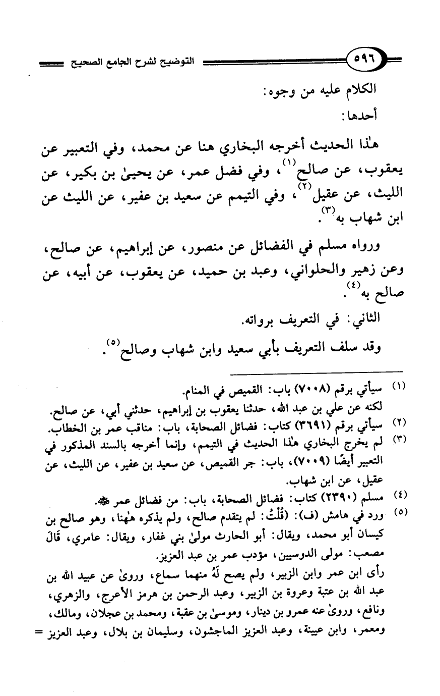 (¬5) ورد في هامش (ف): (قُلْتُ: لم يتقدم صالح، ولم يذكره ها هنا، وهو صالح بن كيسان أبو محمد، ويقال: أبو الحارث مولى بني غفار، ويقال: عامري، قَالَ مصعب: مولى الدوسيين، مؤدب عمر بن عبد العزيز.
