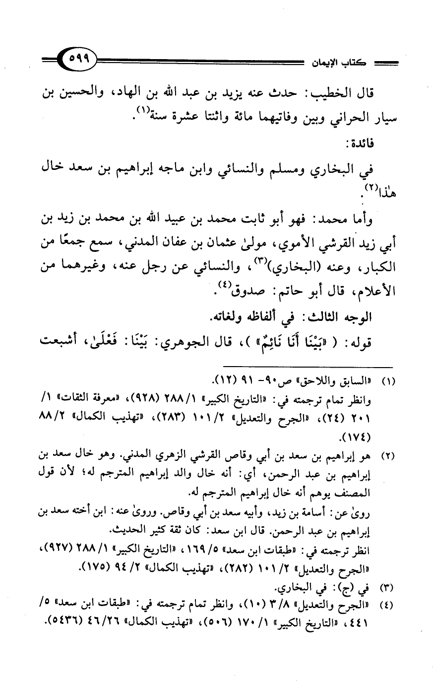 (¬2) هو إبراهيم بن سعد بن أبي وقاص القرشي الزهري المدني. وهو خال سعد بن إبراهيم بن عبد الرحمن، أي: أنه خال والد إبراهيم المترجم له؛ لأن قول المصنف يوهم أنه خال إبراهيم المترجم له.