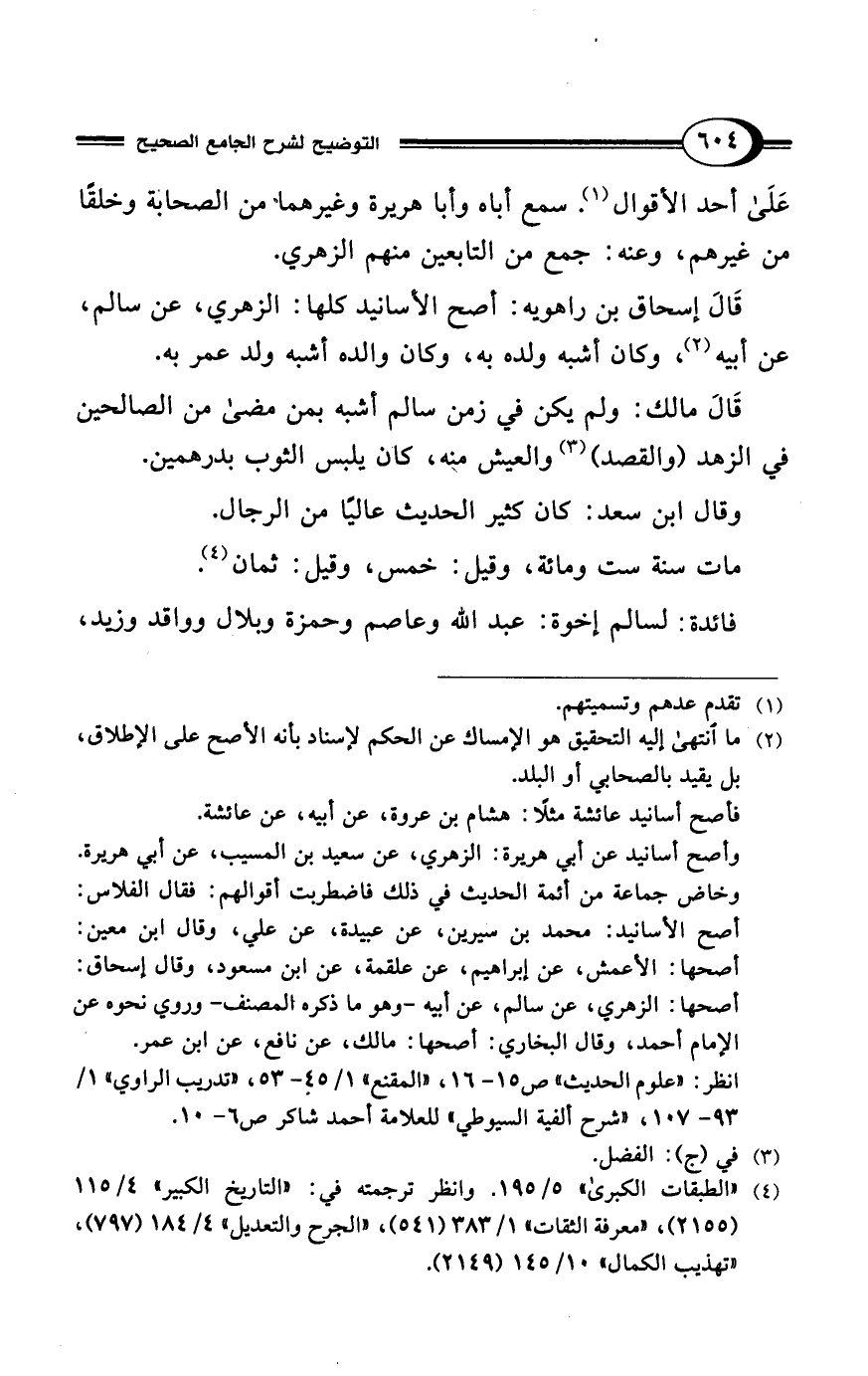 قَالَ إسحاق بن راهويه: أصح الأسانيد كلها: الزهري، عن سالم، عن أبيه (¬2)، وكان أشبه ولده به، وكان والده أشبه ولد عمر به.