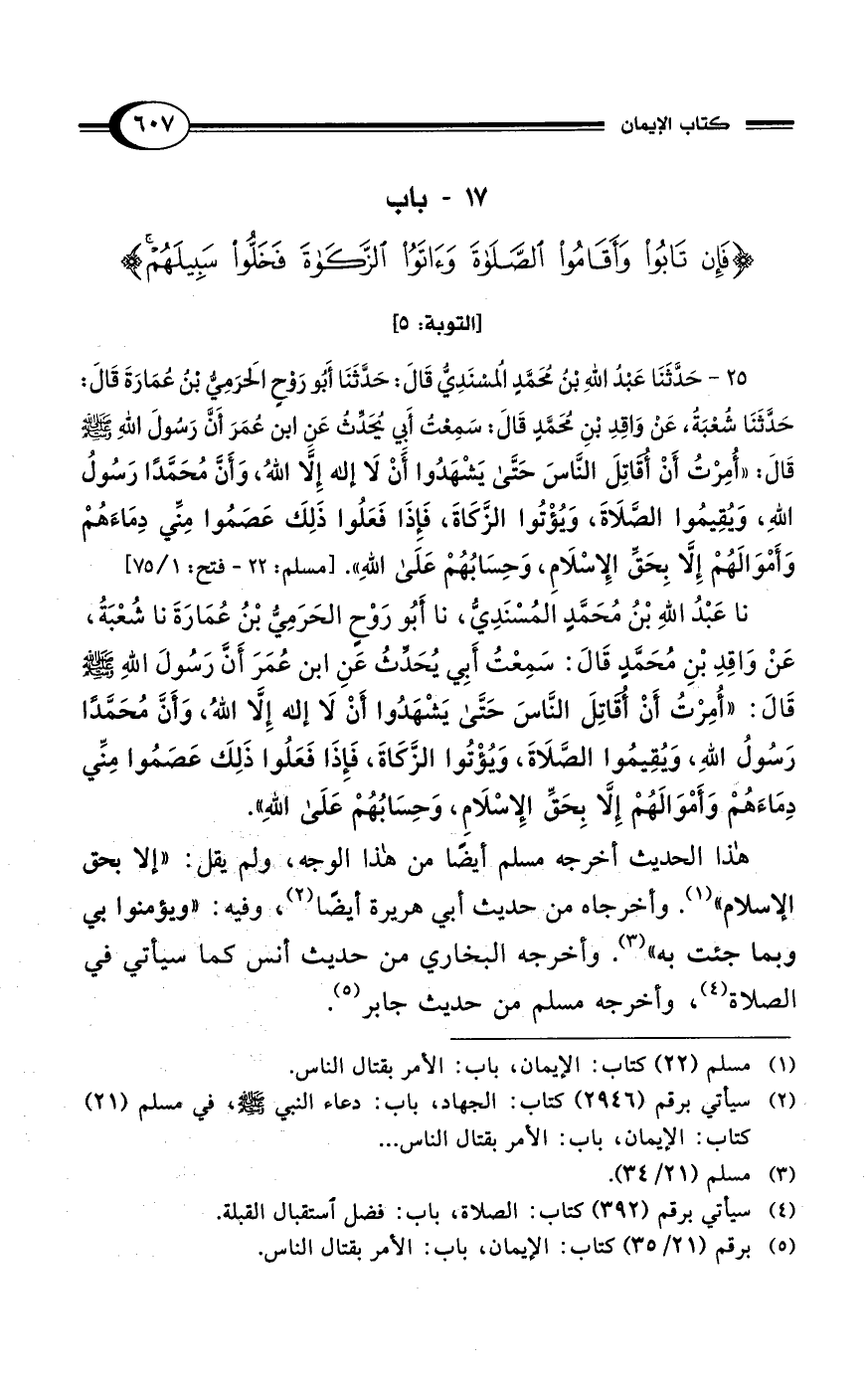 (¬5) برقم (21/ 35) كتاب: الإيمان، باب: الأمر بقتال الناس.