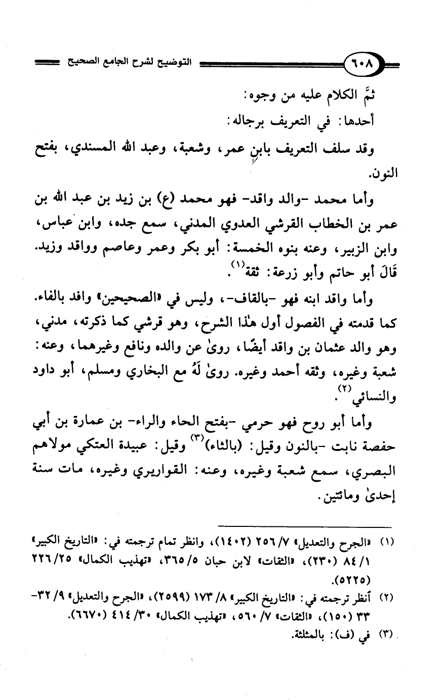 (¬2) انظر ترجمته في: "التاريخ الكبير" 8/ 173 (2599)، "الجرح والتعديل" 9/ 32 - 33 (150)، "الثقات" 7/ 560، "تهذيب الكمال" 30/ 414 (6670).