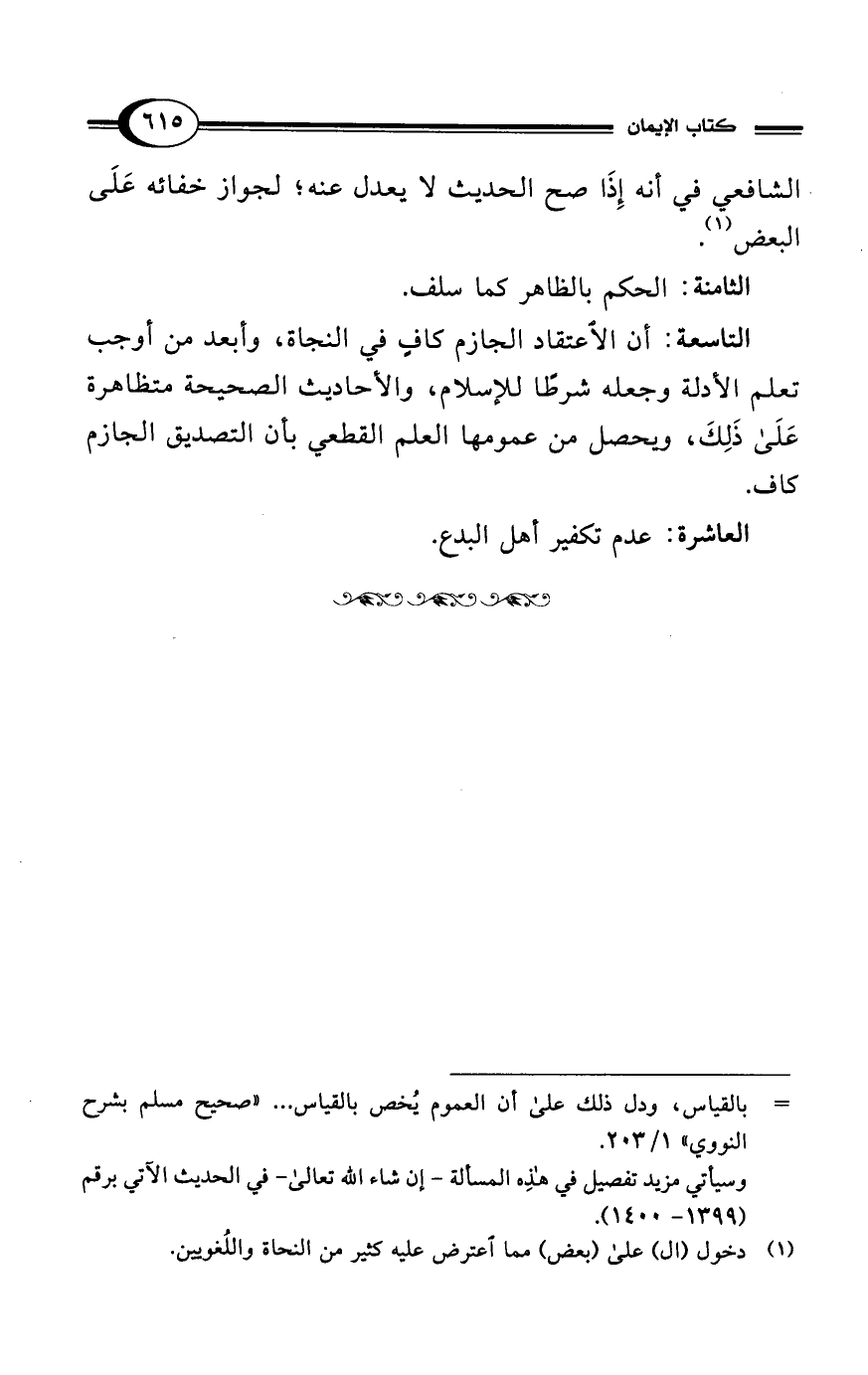 = بالقياس، ودل ذلك على أن العموم يُخص بالقياس ... "صحيح مسلم بشرح النووي" 1/ 203.