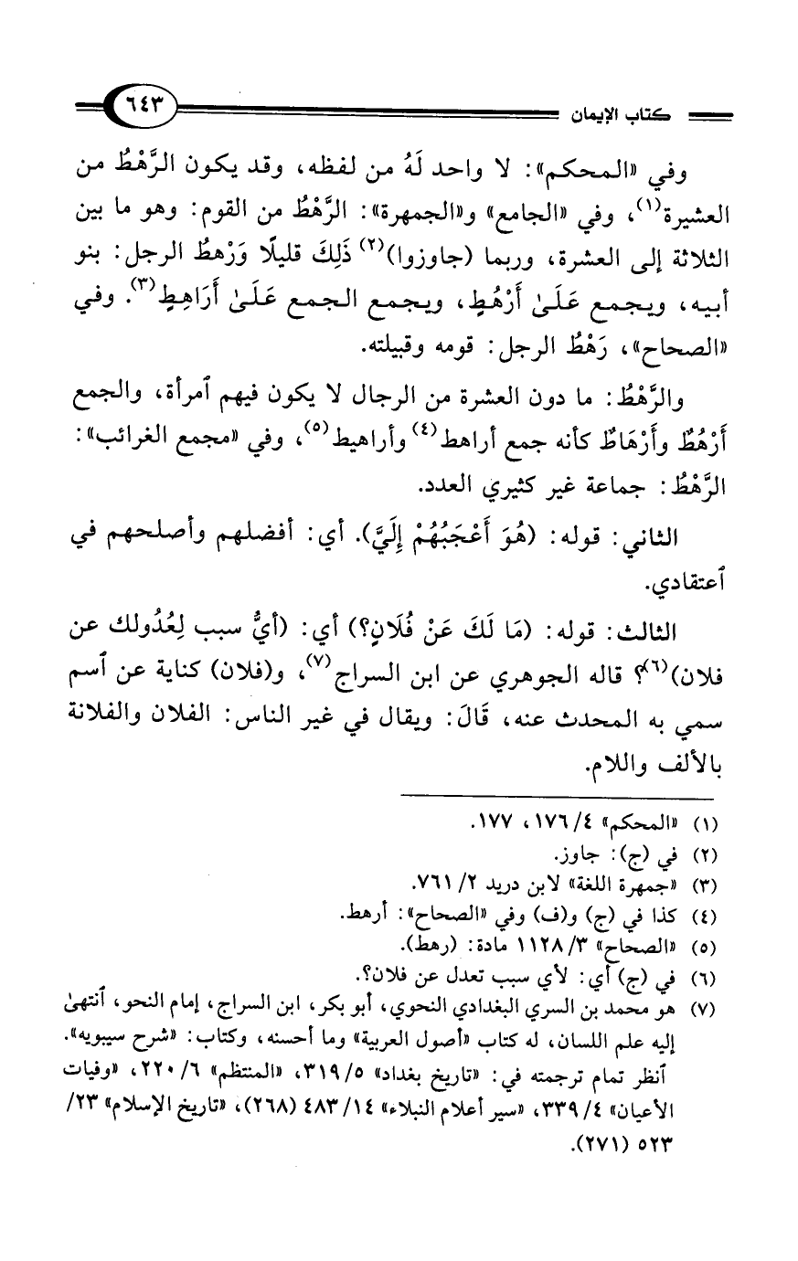(¬7) هو محمد بن السري البغدادي النحوي، أبو بكر، ابن السراج، إمام النحو، انتهى إليه علم اللسان، له كتاب "أصول العربية" وما أحسنه، وكتاب: "شرح سيبويه".