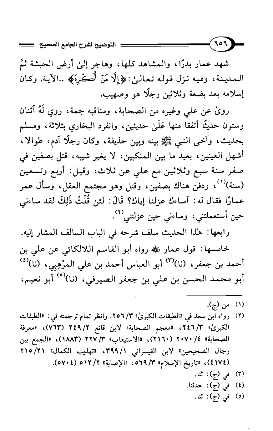 شهد عمار بدرًا، والمشاهد كلها، وهاجر إلى أرض الحبشة ثمَّ المدينة، وفيه نزل قوله تعالى: {إِلَّا مَنْ أُكْرِهَ} .. الآية. وكان إسلامه بعد بضعة وثلاثين رجلًا هو وصهيب.
