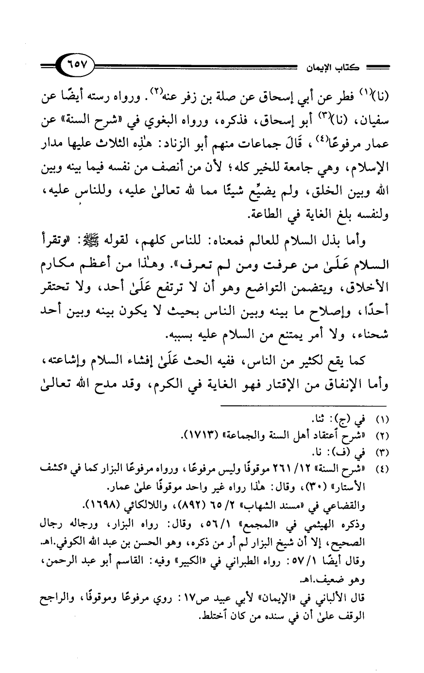 (¬4) "شرح السنة" 12/ 261 موقوفًا وليس مرفوعًا، ورواه مرفوعًا البزار كما في "كشف الأستار" (30)، وقال: هذا رواه غير واحد موقوفًا على عمار.