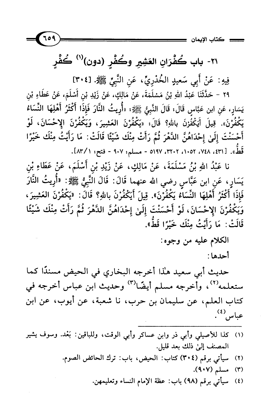 21 - باب كُفْرَانِ الْعَشِيرِ وَكُفْرٍ (دُونَ) (¬1) كُفْرٍ
