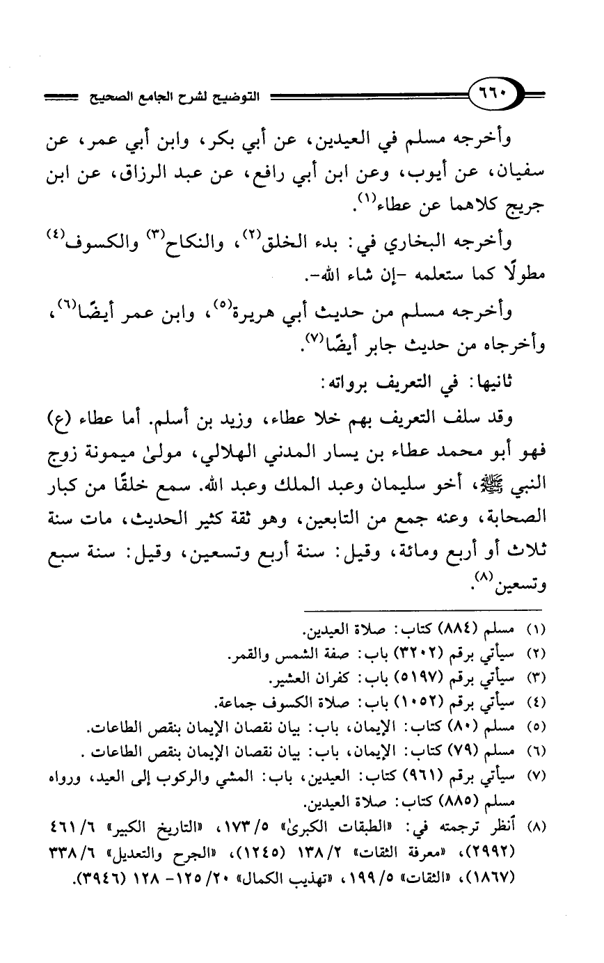 وأخرجه مسلم في العيدين، عن أبي بكر، وابن أبي عمر، عن سفيان، عن أيوب، وعن ابن أبي رافع، عن عبد الرزاق، عن ابن جريج كلاهما عن عطاء (¬1).