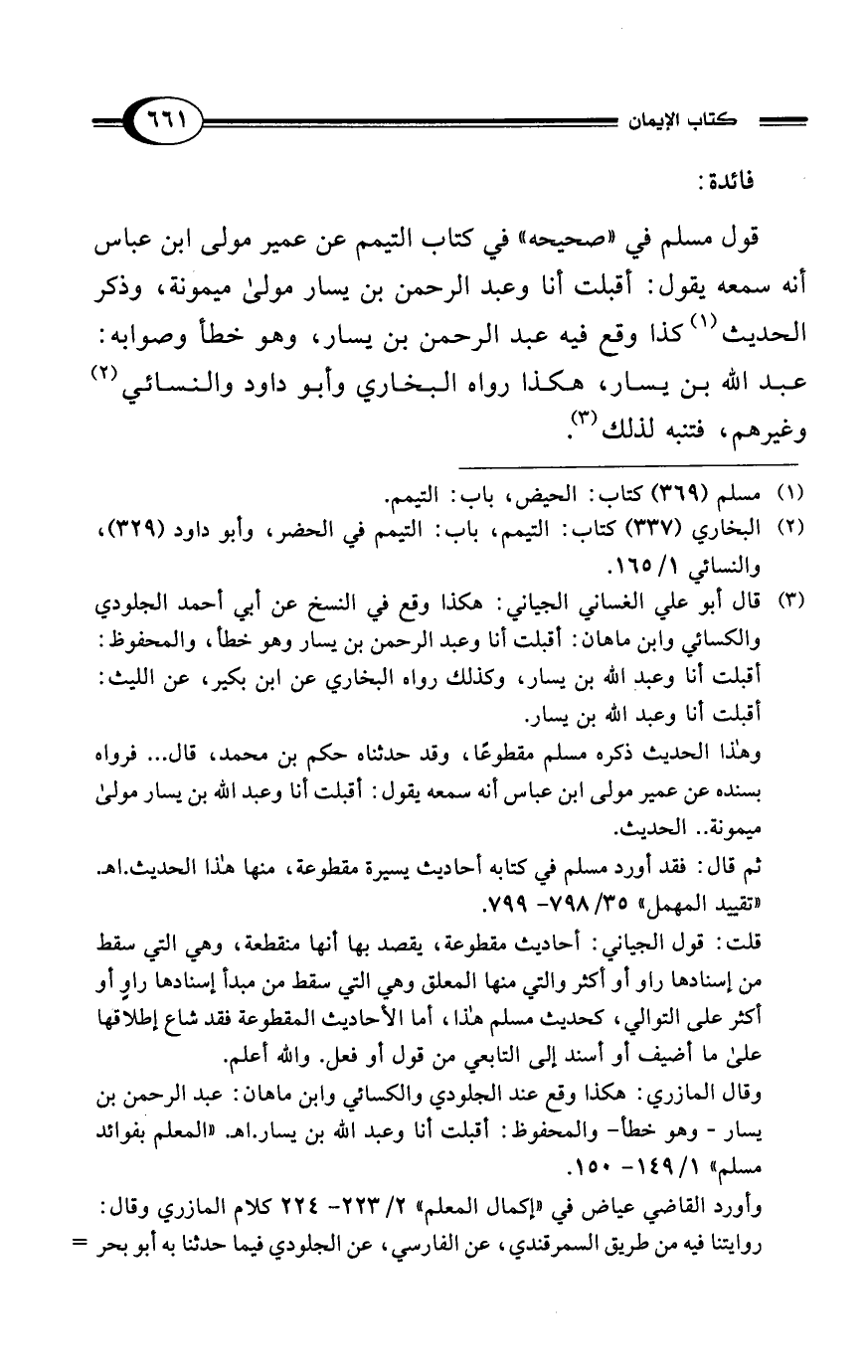 وقال المازري: هكذا وقع عند الجلودي والكسائي وابن ماهان: عبد الرحمن بن يسار -وهو خطأ- والمحفوظ: أقبلت أنا وعبد الله بن يسار. اهـ. "المعلم بفوائد مسلم" 1/ 149 - 150.