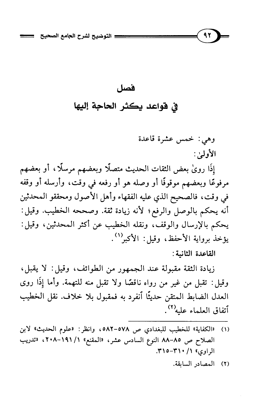 (¬1) "الكفاية" للخطيب للبغدادي ص 578 - 582، وانظر: "علوم الحديث" لابن الصلاح ص 85 - 88 النوع السادس عشر، "المقنع" 1/ 191 - 208، "تدريب الراوي" 1/ 310 - 315.