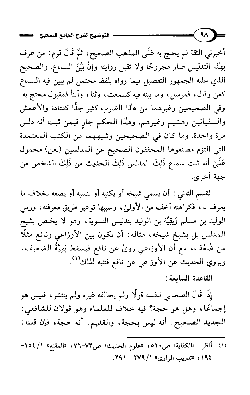 (¬1) انظر: "الكفاية" ص510، "علوم الحديث" ص 73 - 76، "المقنع" 1/ 154 - 194، "تدريب الراوي" 1/ 279 - 291.