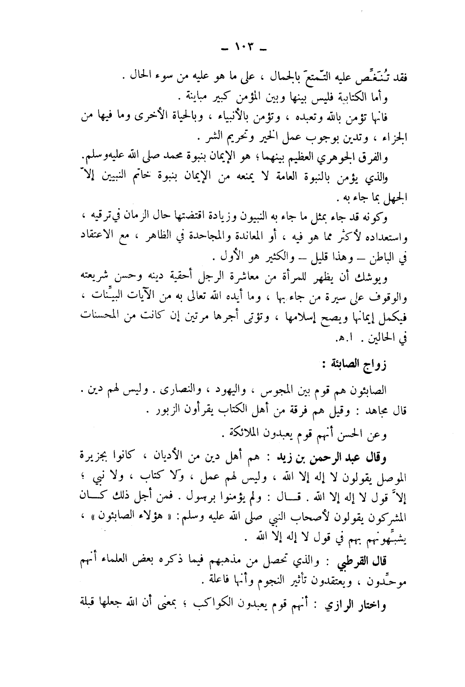 فمن أجل ذلك كان المشركون يقولون لاصحاب النبي صلى الله عليه وسلم: " هؤلاء الصابئون "، يشبهونهم بهم في قول لا إله إلا الله.