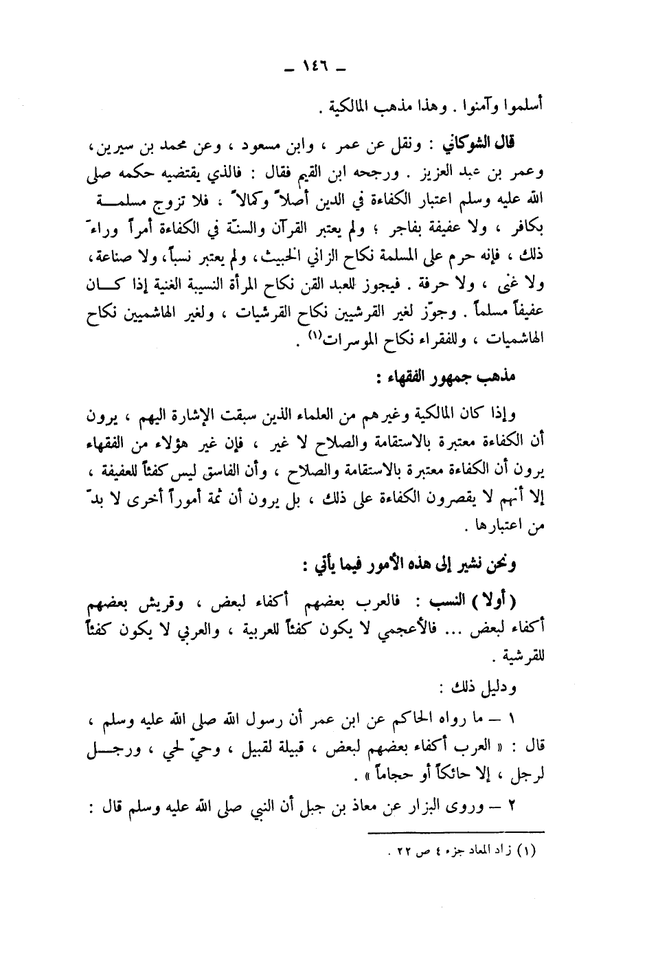 1 - ما رواه الحاكم عن ابن عمر أن رسول الله صلى الله عليه وسلم، قال: " العرب أكفاء بعضهم لبعض، قبيلة لقبيل، وحي لحي، ورجل لرجل، إلا حائكا أو حجاما ".