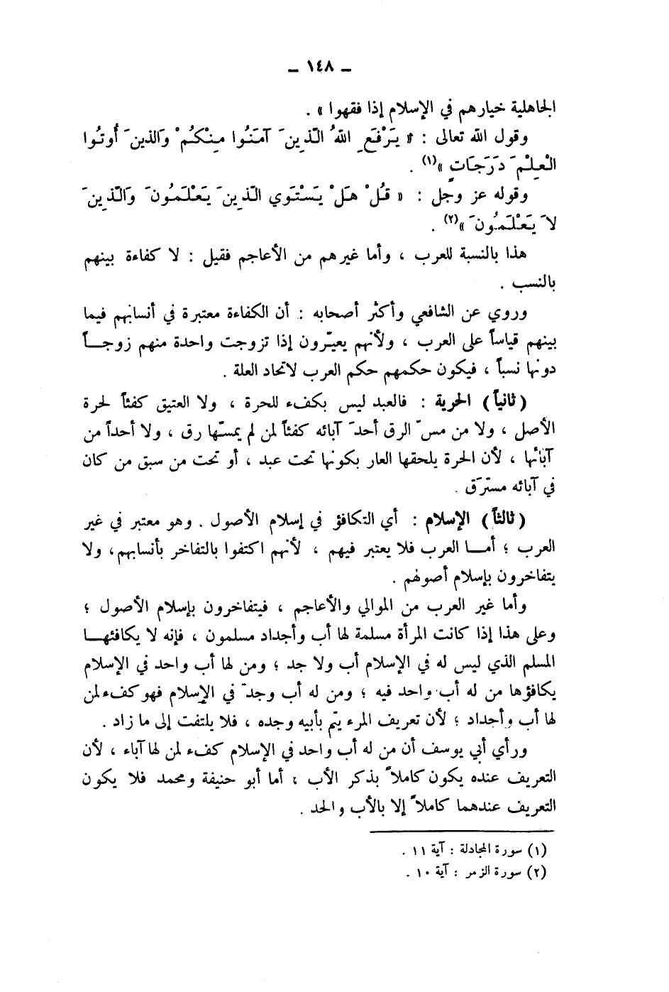(ثالثا) الاسلام: أي التكافؤ في إسلام الاصول.