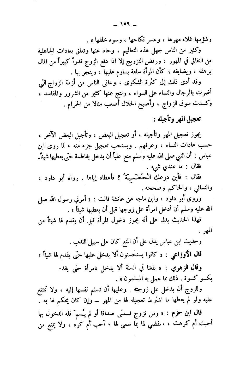 يجوز تعجيل المهر وتأجيله، أو تعجيل البعض، وتأجيل البعض الاخر، حسب عادات النساء، وعرفهم.