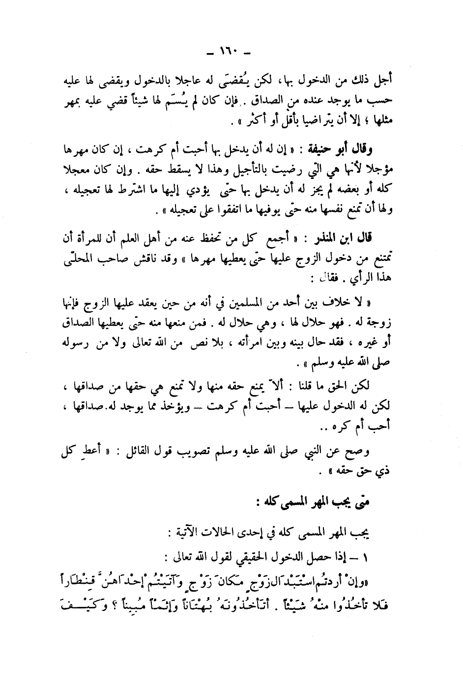قال ابن المنذر: " أجمع كل من تحفظ عنه من أهل العلم أن للمرأة أن تمتنع من دخول الزوج عليها حتى يعطيها مهرها " وقد ناقش صاحب المحلى هذا الرأي.