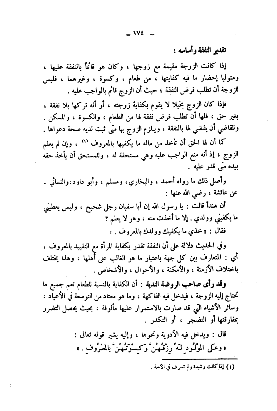 وفي الحديث دلالة على أن النفقة تقدر بكفاية المرأة مع التقييد بالمعروف، أي: المتعارف بين كل حهة باعتبار ما هو الغالب على أهلها، وهذا يختلف باختلاف الازمنة، والامكنة، والاحوال، والاشخاص.