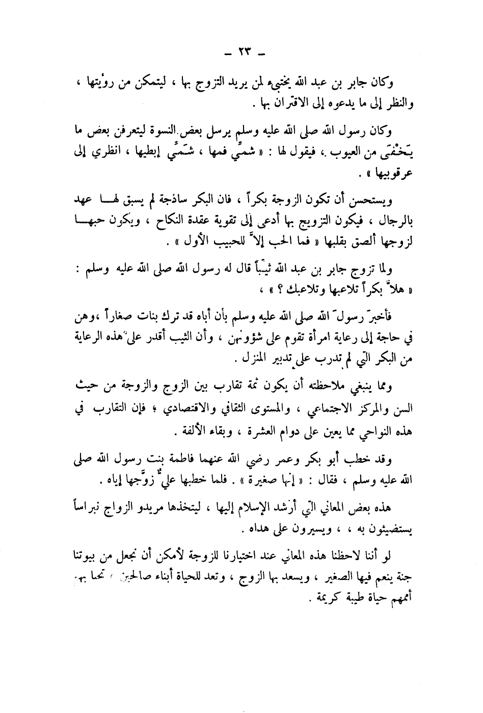 هذه بعض المعاني التي أرشد الاسلام إليها، ليتخذها مريدو الزواج نبراسا يستضيئون به، ويسيرون على هداه.