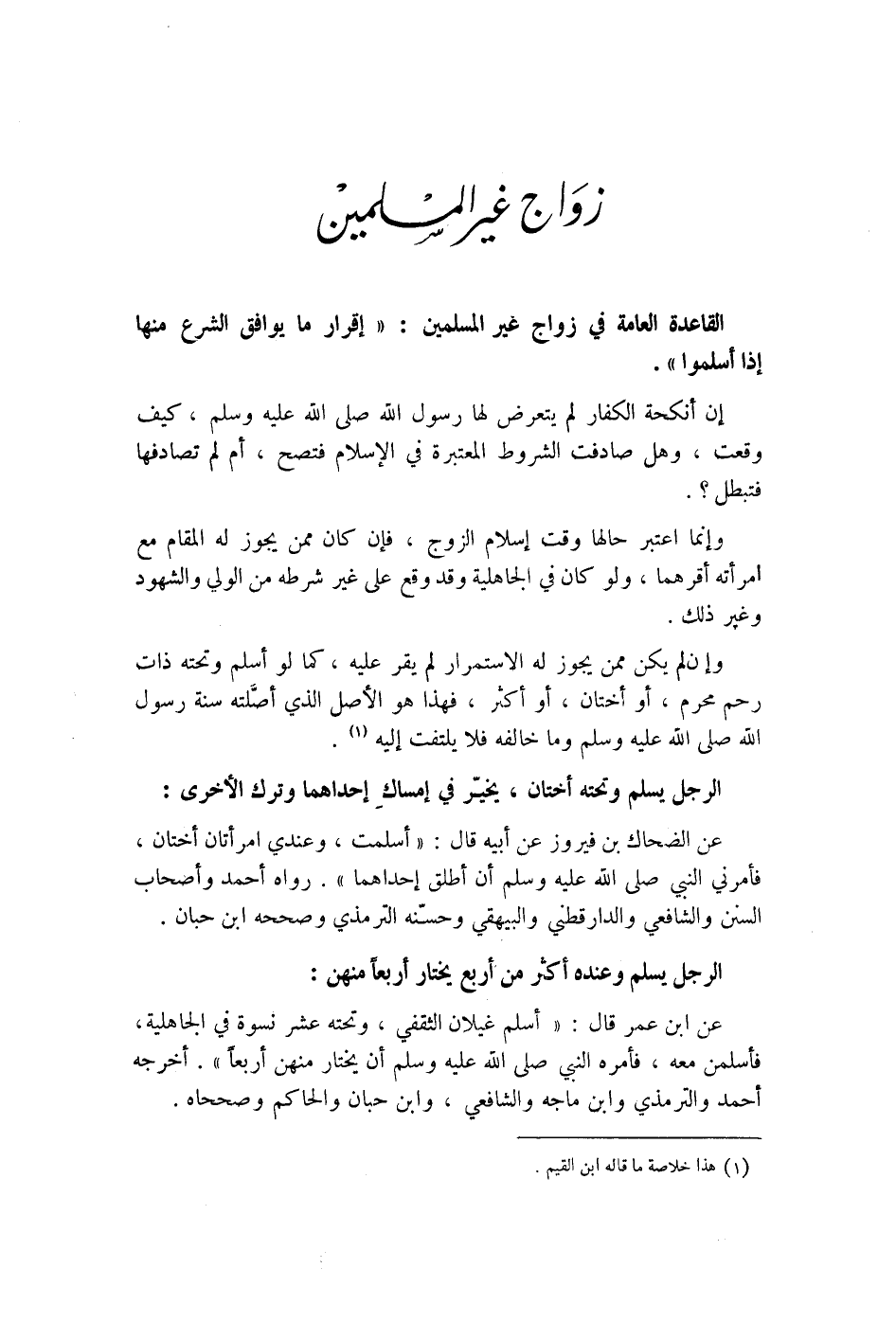 القاعدة العامة في زواج غير المسلمين: " إقرار ما يوافق الشرع منها إذا أسلموا ".