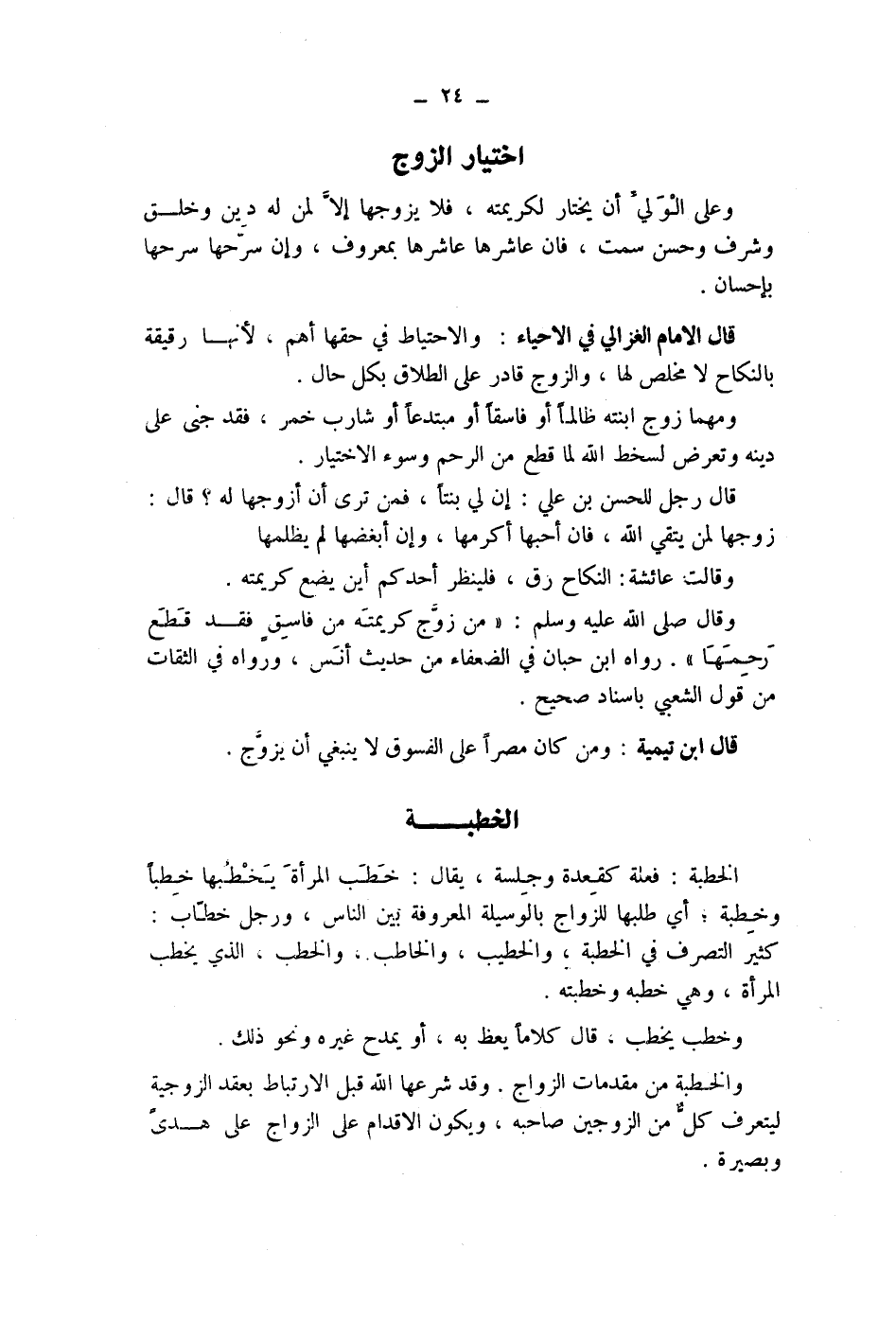 وعلى الولي أن يختار لكريمته، فلا يزوجها إلا لمن له دين وخلق وشرف وحسن سمت، فان عاشرها عاشرها بمعروف، وإن سرحها سرحها بإحسان.