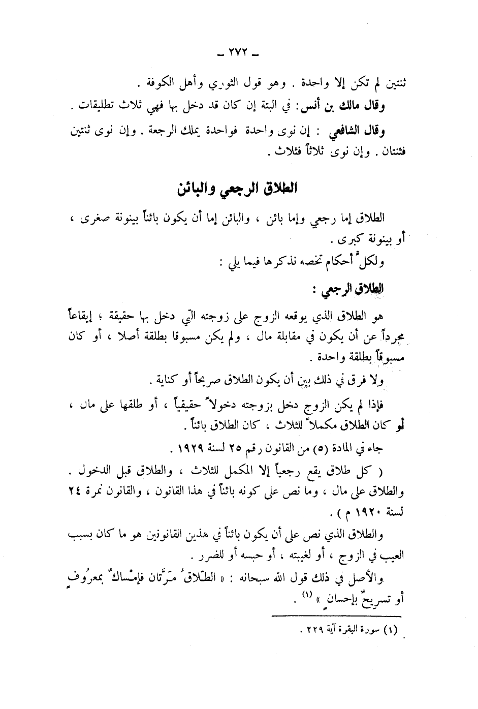 والطلاق الذي نص على أن يكون بائنا في هذين القانونين هو ما كان بسبب العيب في الزوج، أو لغيبته، أو حبسه أو للضرر.
