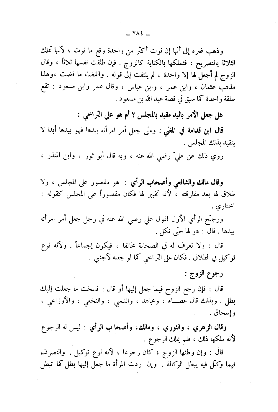 رجوع الزوج: قال: فإن رجع الزوج فيما جعل إليها أو قال: فسخت ما جعلت إليك، بطل.