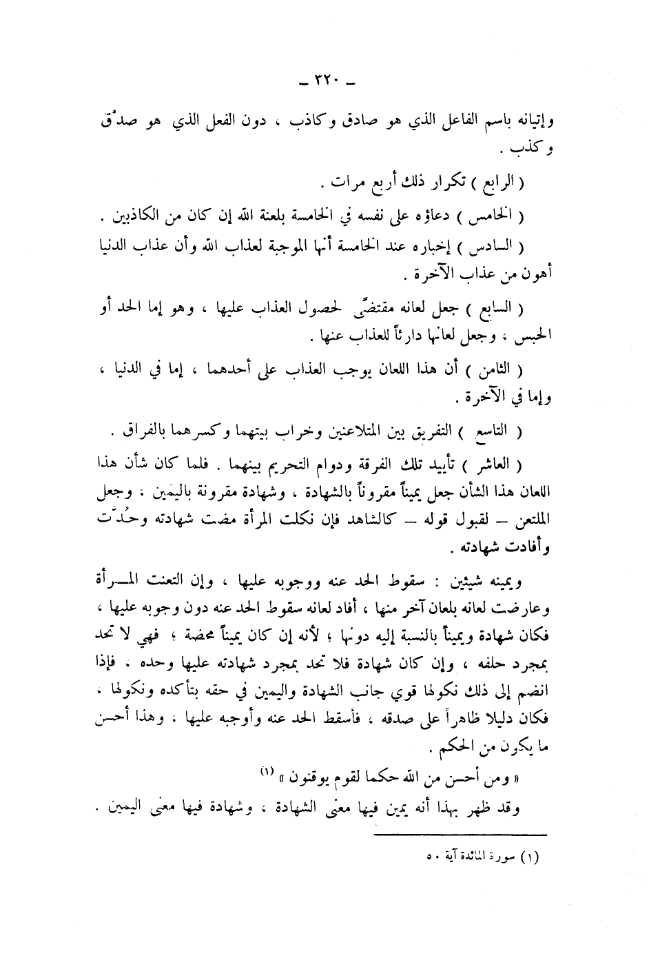 " ومن أحسن من الله حكما لقوم يوقنون " (1) وقد ظهر بهذا أنه يمين فيها معنى الشهادة، وشهادة فيها معنى اليمين.