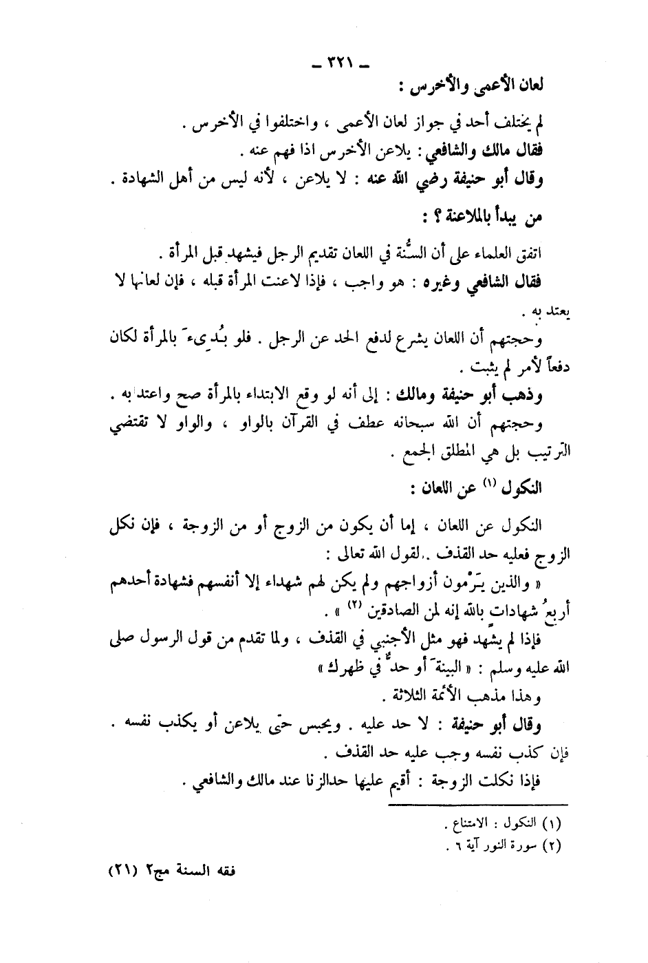 النكول (1) عن اللعان: النكول عن اللعان، إما أن يكون من الزوج أو من الزوجة، فإن نكل الزوج فعليه حد القذف.