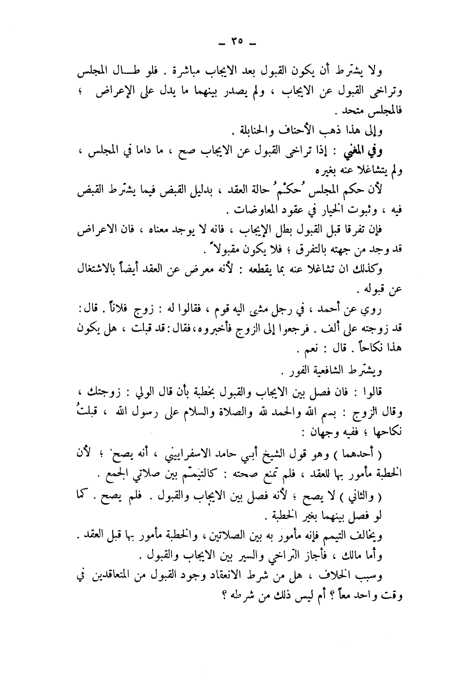وسبب الخلاف، هل من شرط الانعقاد وجود القبول من المتعاقدين في وقت واحد معا؟ أم ليس ذلك من شرطه؟