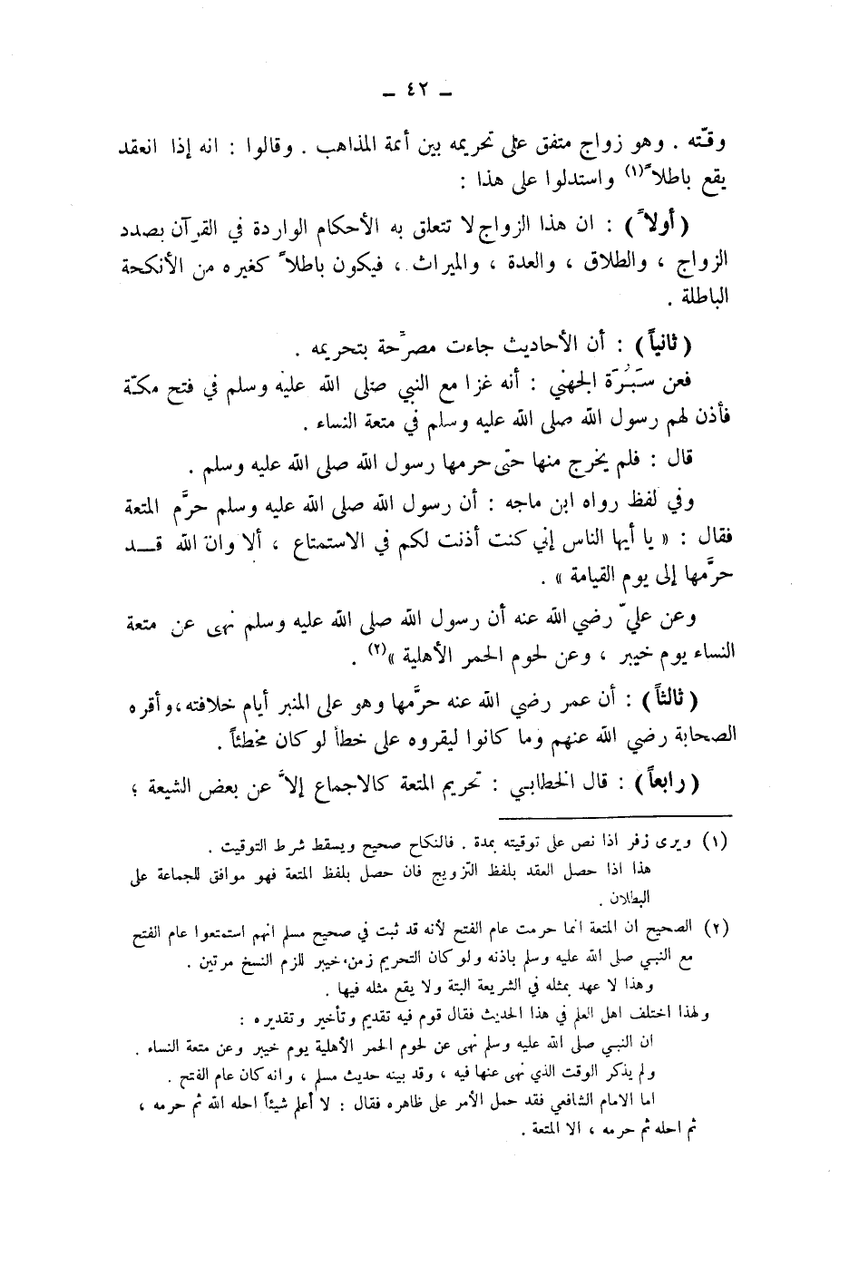 (رابعا) : قال الخطابي: تحريم المتعة كالاجماع إلا عن بعض الشيعة،