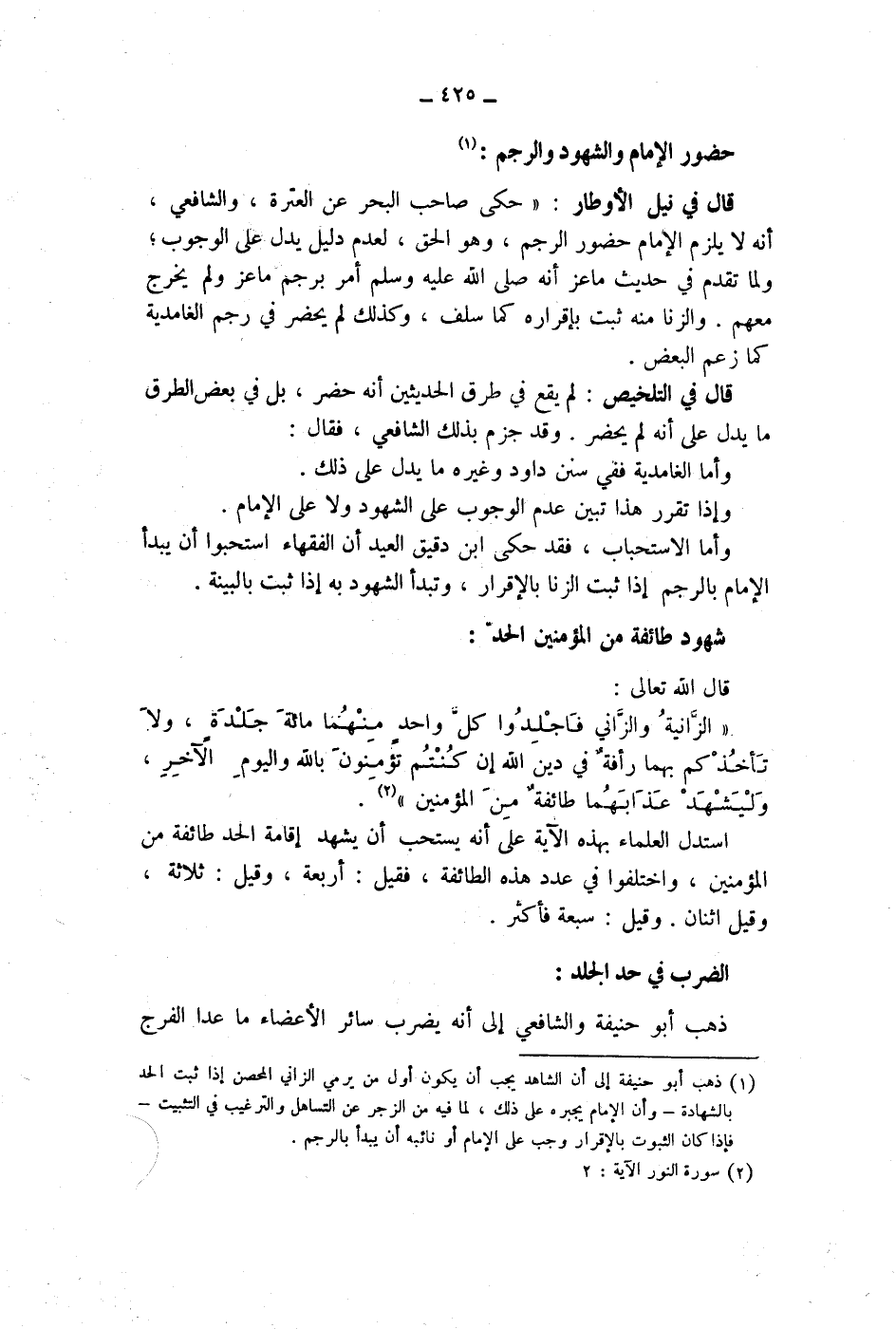 شهود طائفة من المؤمنين الحد: قال الله تعالى: " الزانية والزاني فاجلدوا كل واحد منهما مائة جلدة، ولا تأخذكم بهما رأفة في دين الله إن كنتم تؤمنون بالله واليوم الآخر، وليشهد عذابهما طائفة من المؤمنين " (2) .