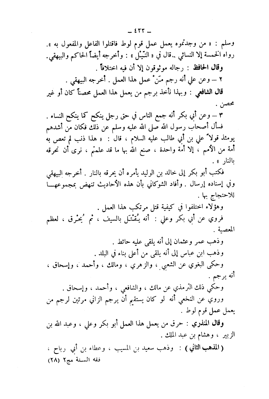 وهؤلاء اختلفوا في كيفية قتل مرتكب هذا العمل.