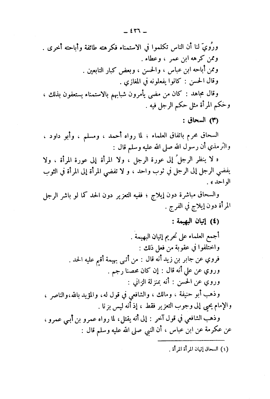 (3) السحاق: السحاق محرم باتفاق العلماء، لما رواه أحمد، ومسلم، وأبو داود والترمذي أن رسول الله صلى الله عليه وسلم قال: " لا ينظر الرجل إلى عورة الرجل، ولا المرأة إلى عورة المرأة، ولا يفضي الرجل إلى الرجل في ثوب واحد، ولا تفضي المرأة إلى المرأة في الثوب الواحد ".