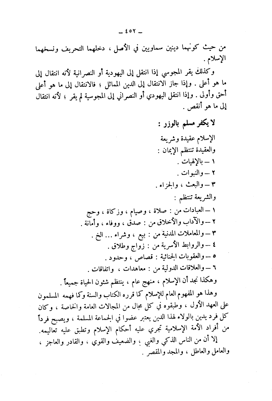 لا يكفر مسلم بالوزر: الاسلام عقيدة وشريعة.