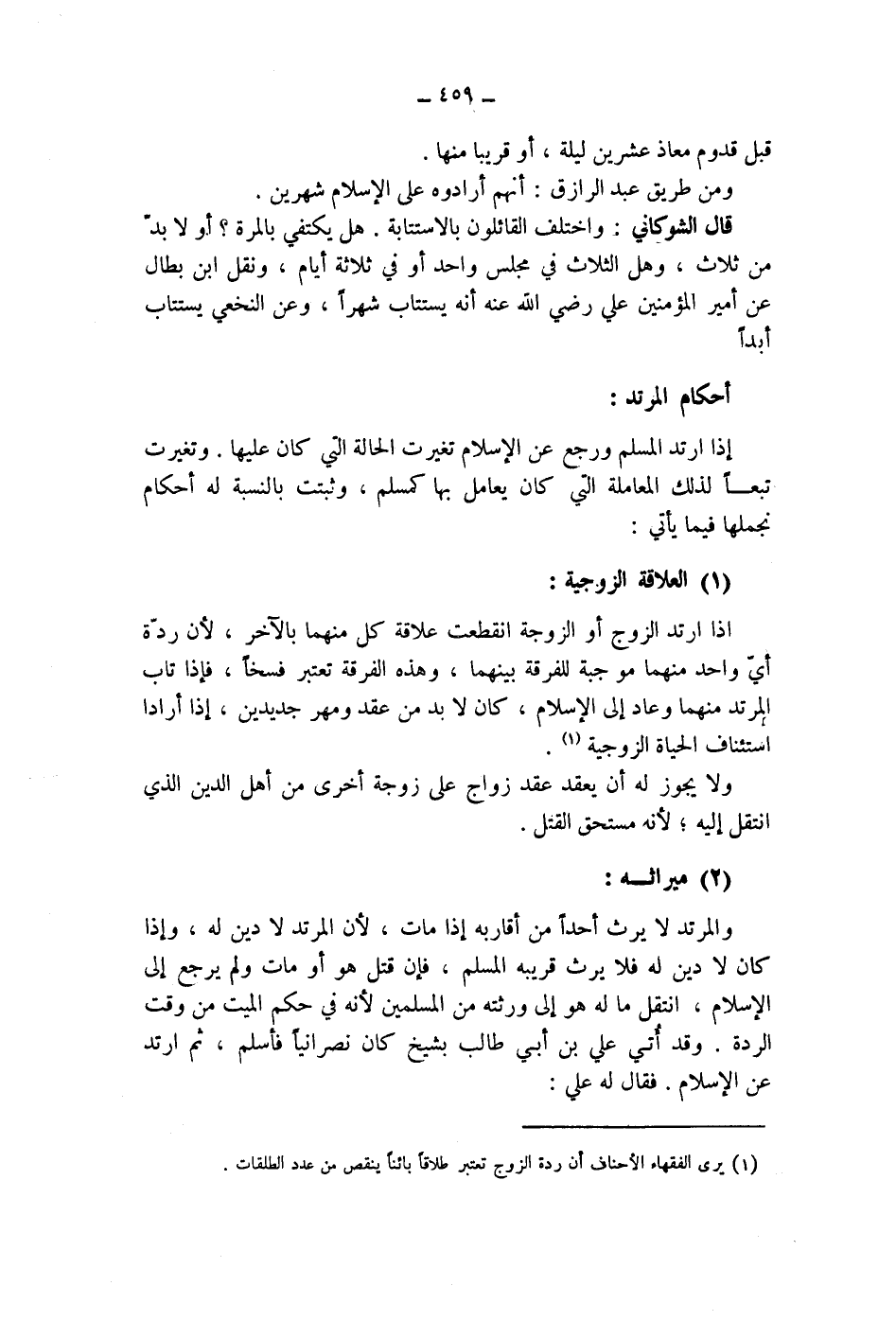 (1) يرى الفقهاء الاحناف أن ردة الزوج تعتبر طلاقا بائنا ينقص من عدد الطلقات.